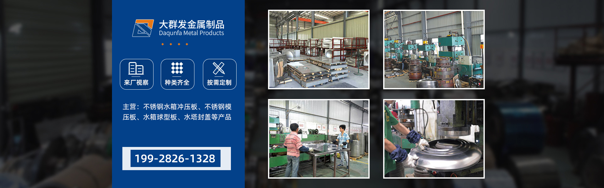 佛山市大群發(fā)金屬制品有限公司是一家集不銹鋼生產(chǎn)、加工、銷售于一體的大型龍頭企業(yè),座落于交通便捷的廣東省佛山市陳村鎮(zhèn)廣隆工業(yè)區(qū)。專業(yè)從事不銹鋼材料,主要有不銹鋼圓形水塔封蓋、不銹鋼方箱沖壓板、不銹鋼卷板、平板的生產(chǎn)批發(fā)和銷售,常年庫(kù)存量大,價(jià)格優(yōu)惠!材質(zhì)主要有:優(yōu)質(zhì)的304、201不銹鋼材料精制而成。